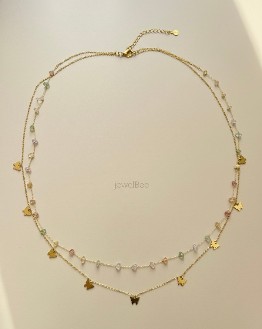 18K Gold Plated Butterfly with crystals Double layer hip chain