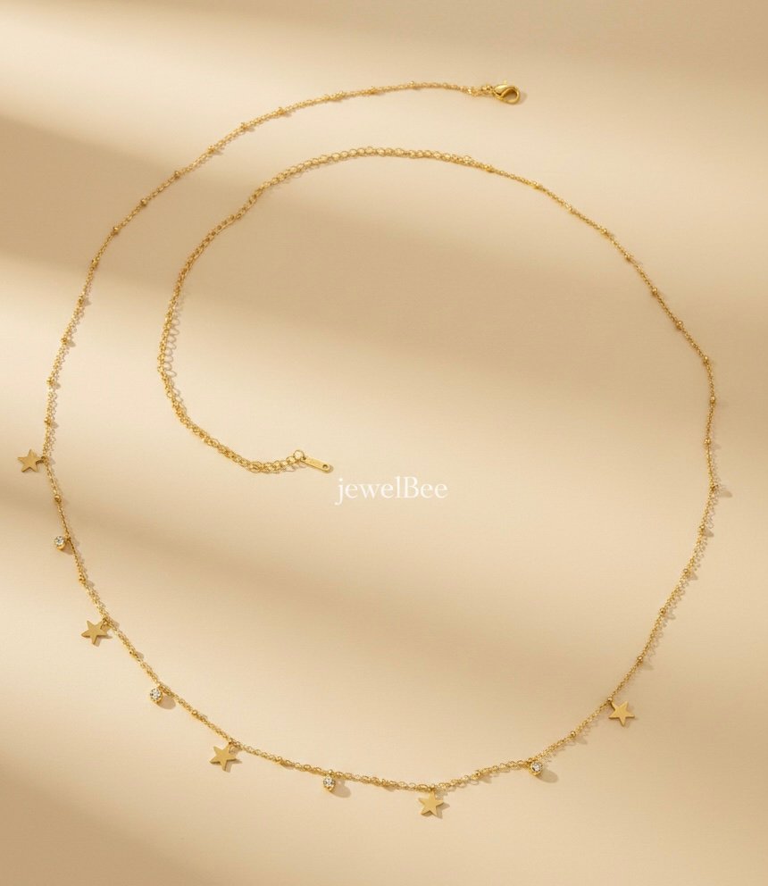 18K Gold Plated Star with Ad stones single layer hip chain