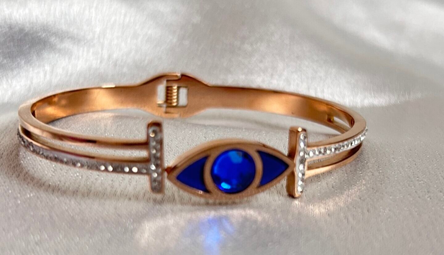 Add a touch of elegance and protection to your jewelry collection with our 18k Rose Gold Plated Evil Eye Bracelet. This stunning piece is crafted from durable stainless steel and coated with a rich 18k rose gold plating, offering both beauty and strength.