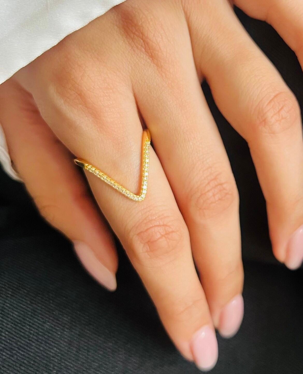 18k Rose Gold plated Stone Alloy Adjustable Ring – V Shape