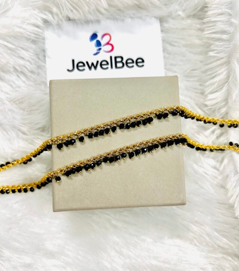 Gold Plated Karimani Balck Beaded Anklet