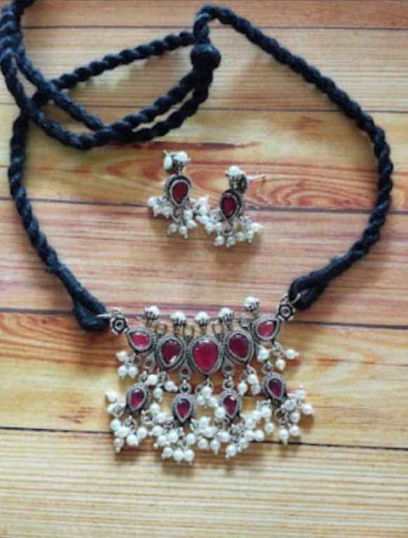 Jyothika Silver Plated Choker Set – RUBY