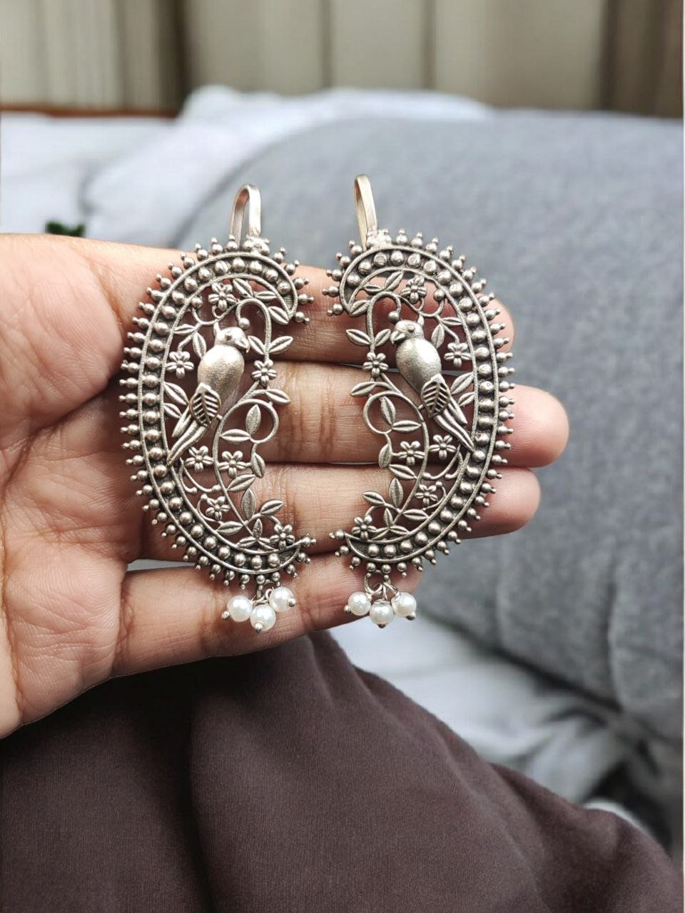 Oxidized Parrot Design Earcuff | Flower Art Silver Replica Unique Jewelry