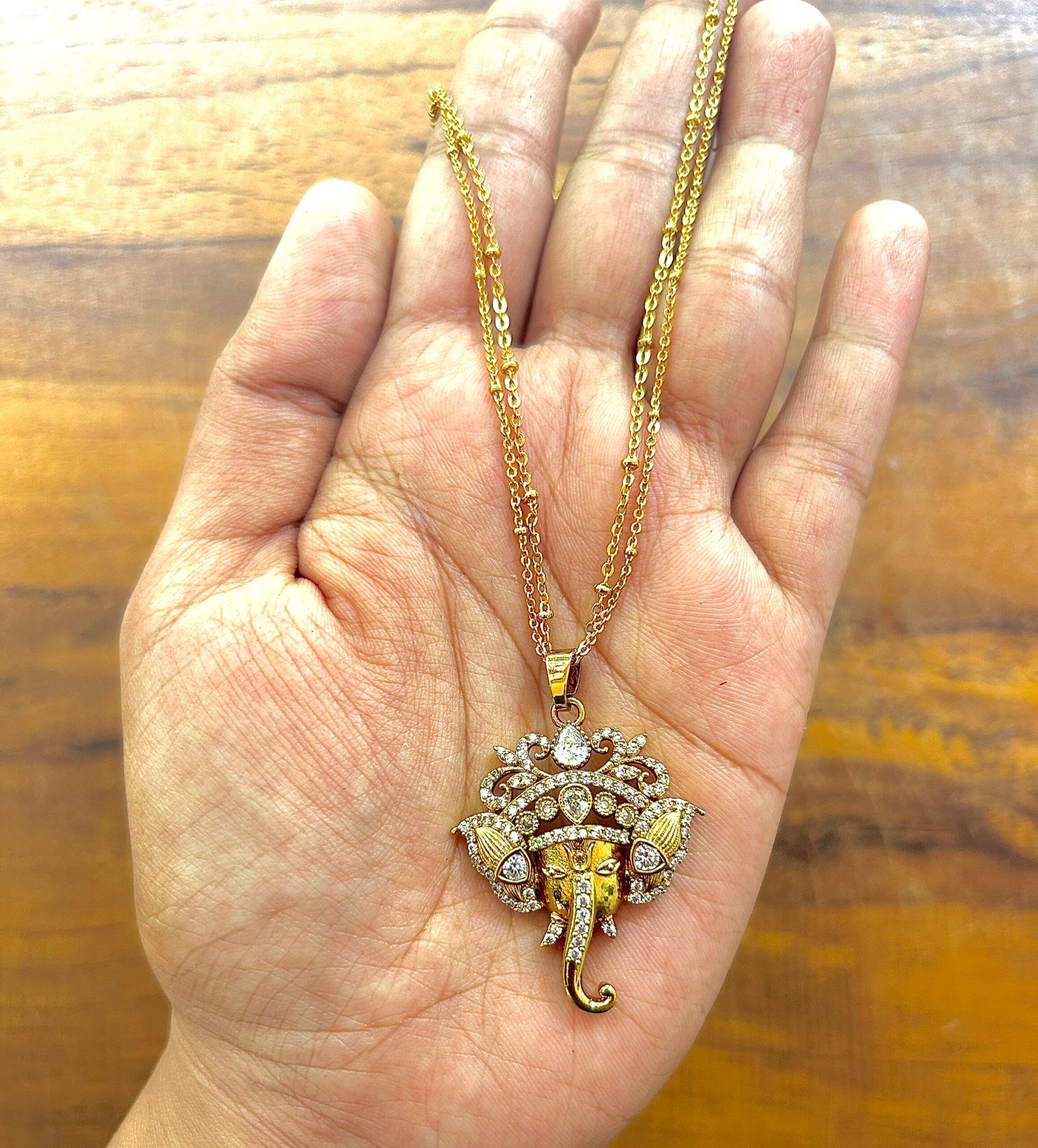 Premium Ganesha Gold Plated AD Stone pendant Set