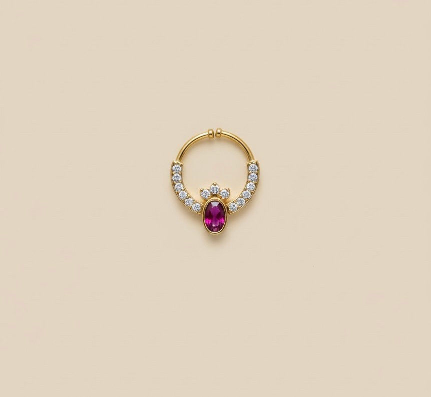 Premium Gold Plated AD Stone Non Piercing Septum Ring