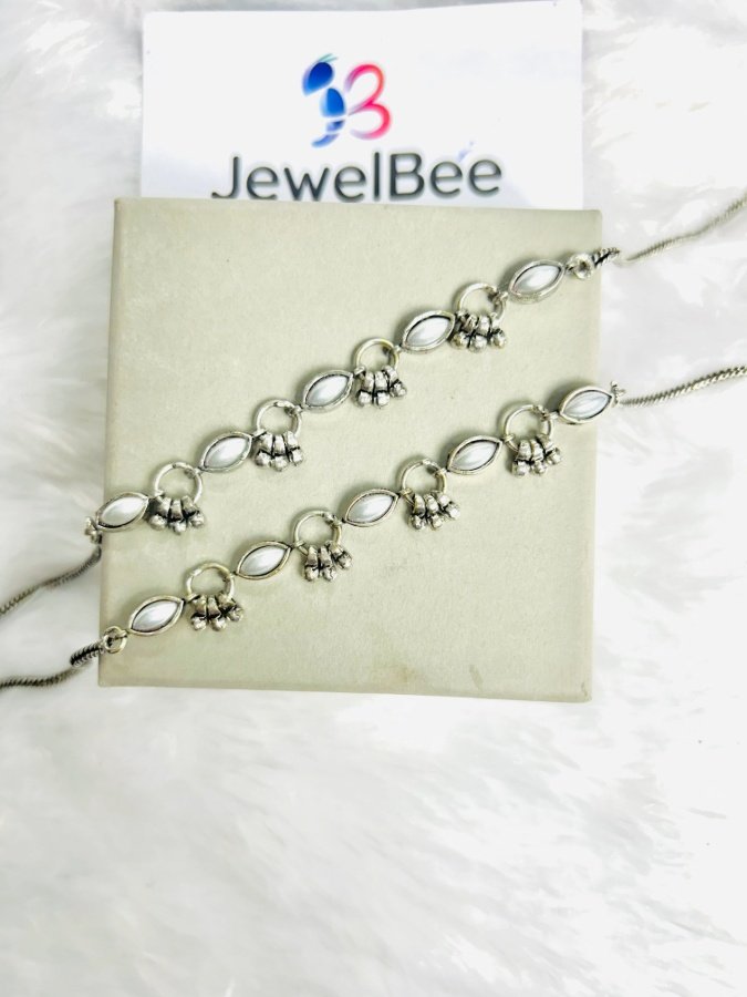 Be the first to review “Silver Plated Sakhi Anklets- PEARL”
