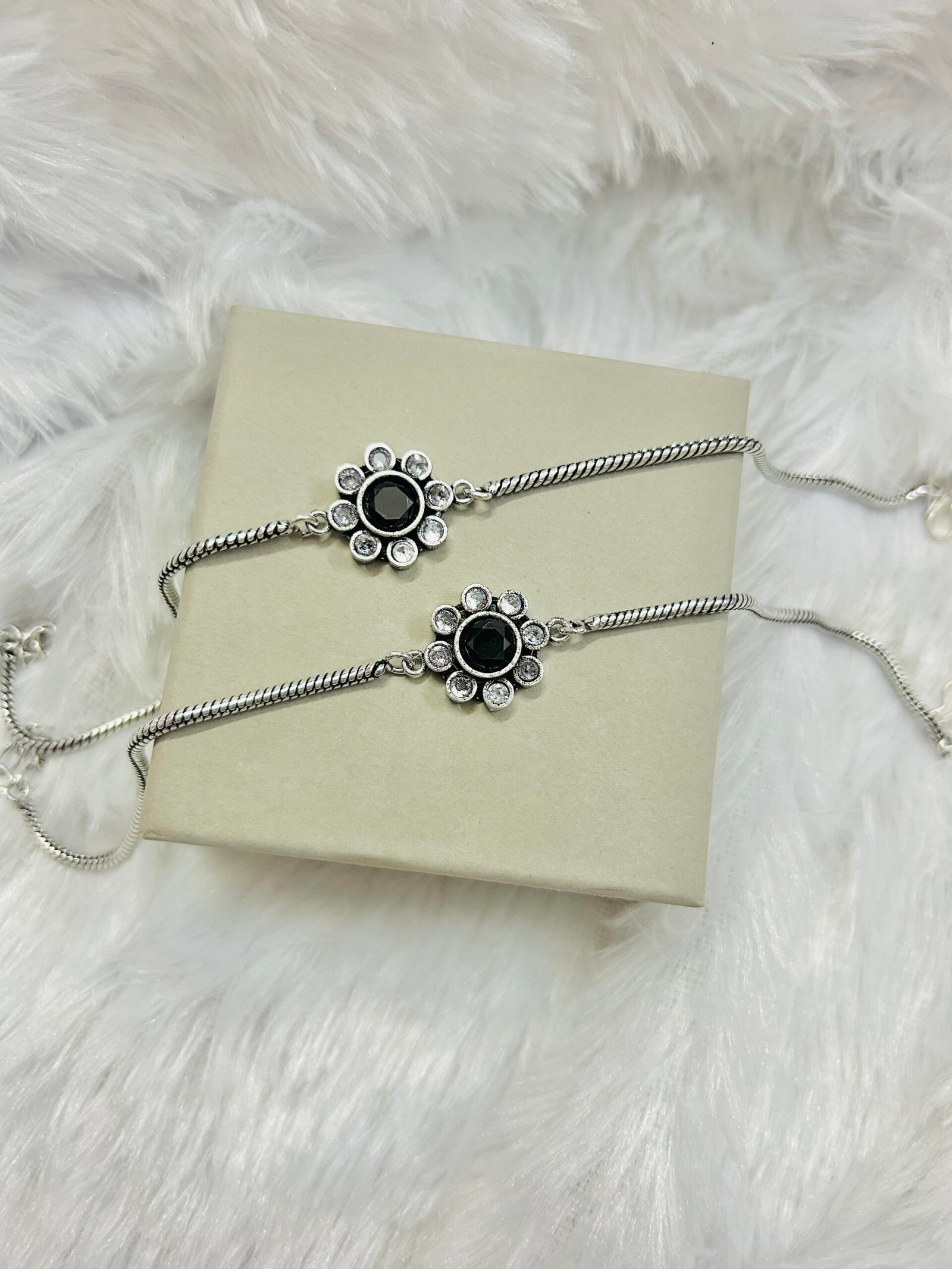 Small Flower Anklets-Black & White Stone Anklet