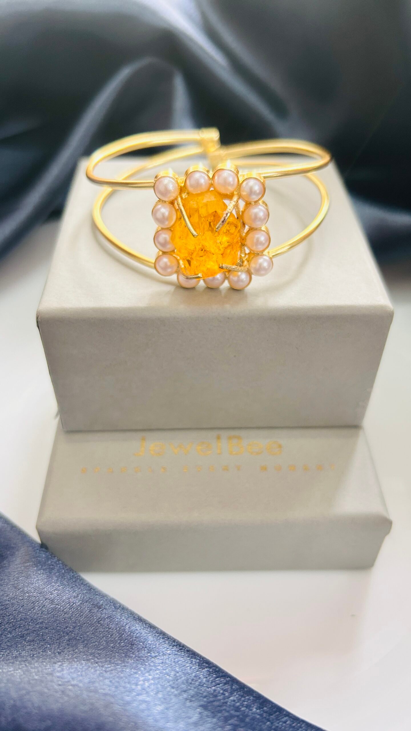 Add a touch of uniqueness to your jewelry collection with these Adjustable Bangles, featuring rough uncut stones set in pure brass material. The raw, natural stones bring an earthy charm to the sleek design, making them a statement piece for both casual and festive wear.