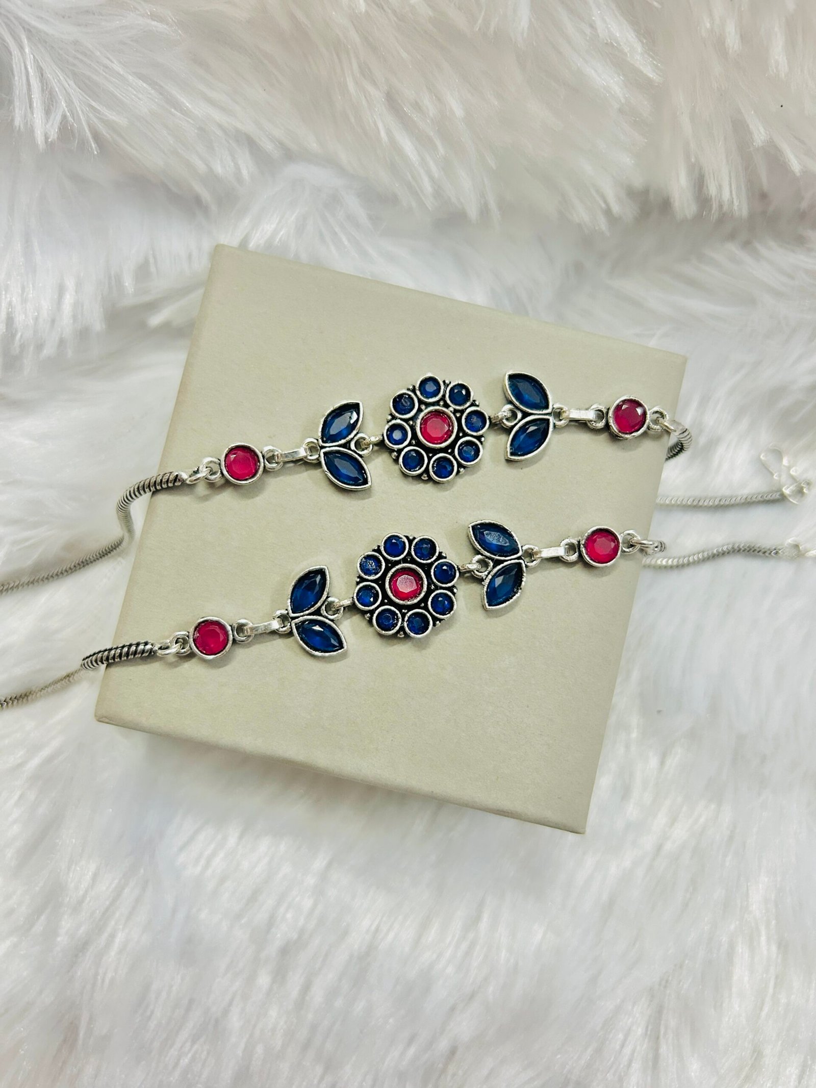 Vine Flower Anklets- Navy Blue & Pink Anklet