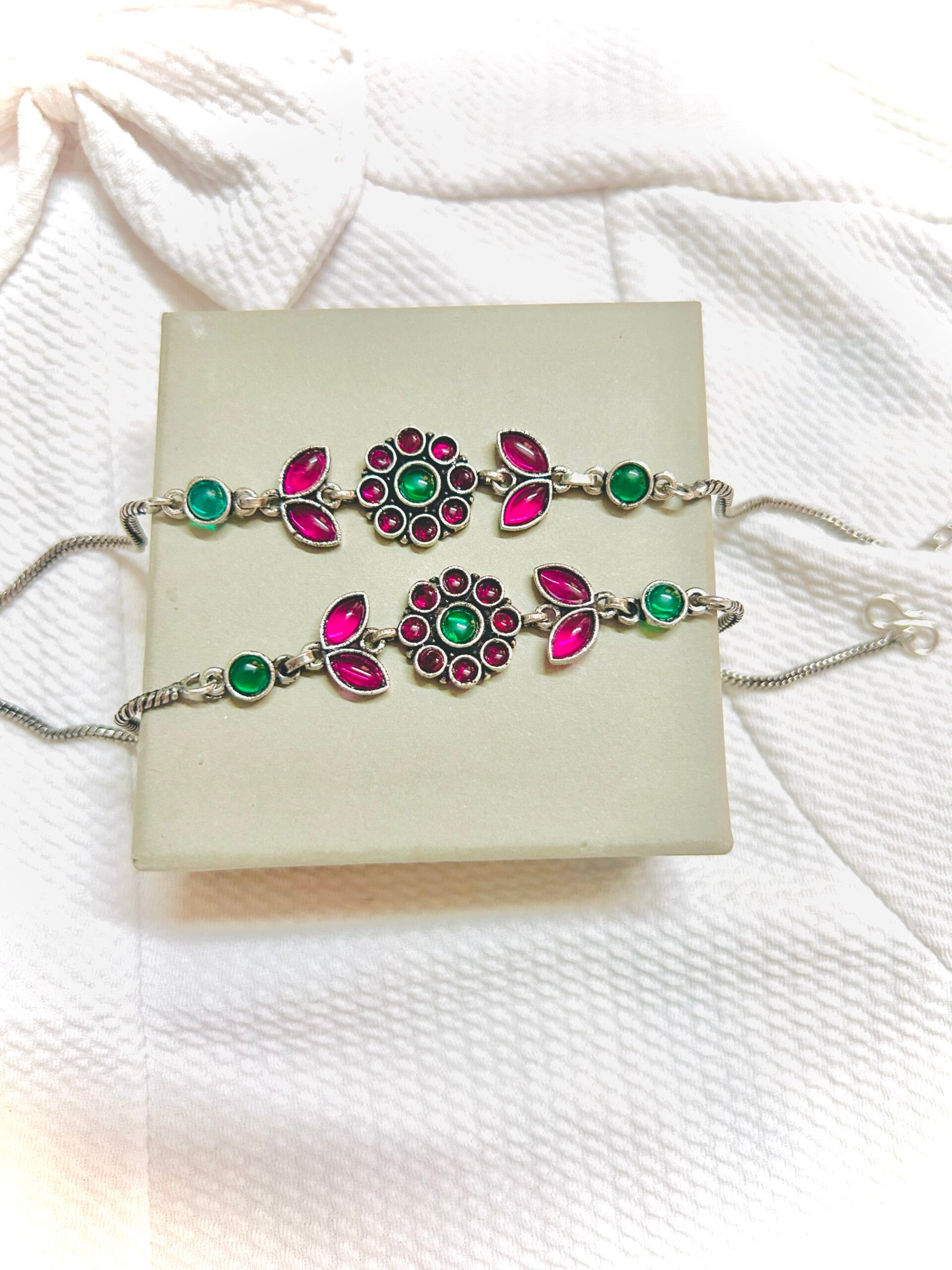 Vine Flower Anklets- Pink and Green